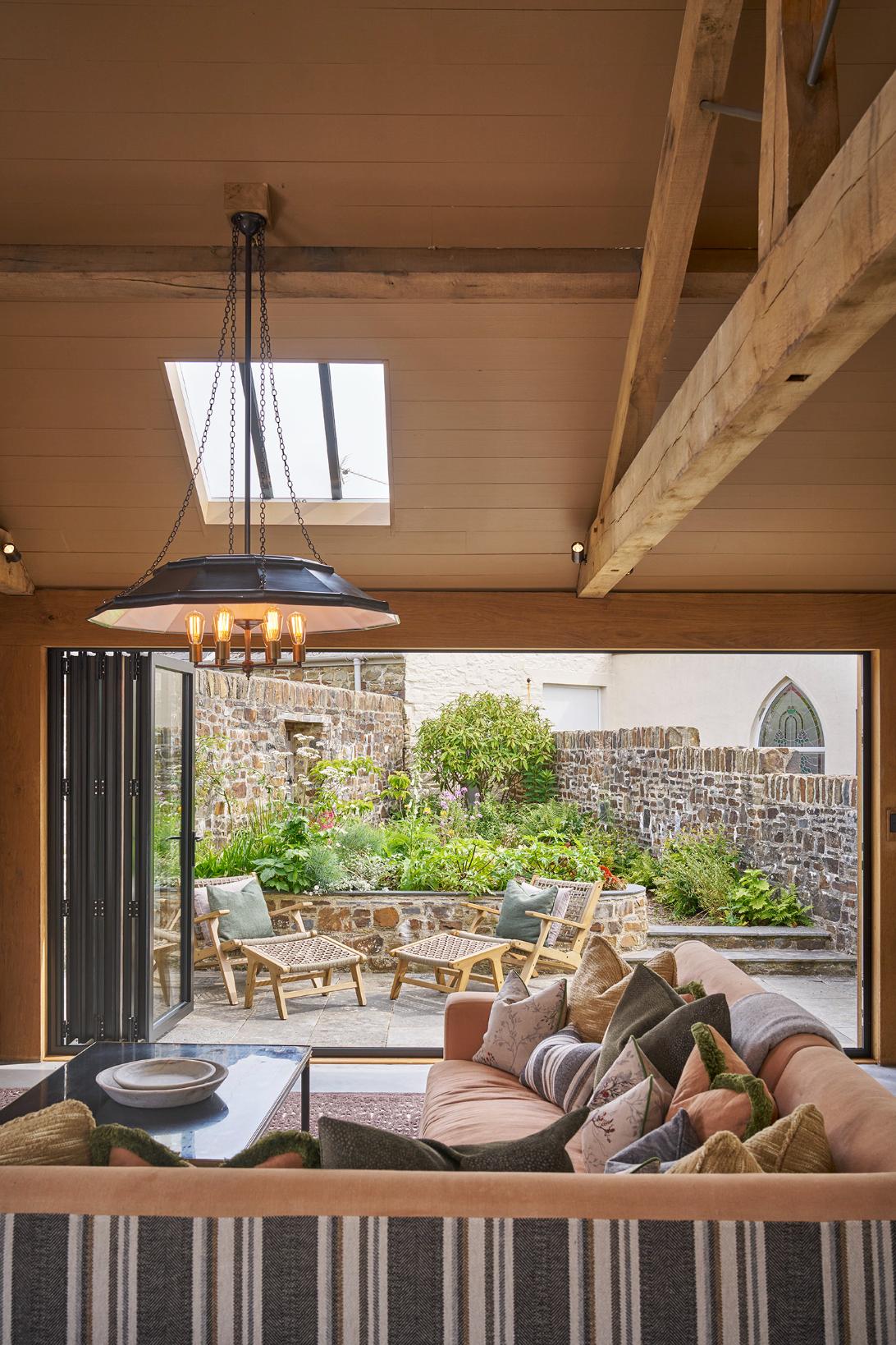 Polished cement floors, exposed beams, sheets of glass and a smart neutral palette bring contemporary design to this historic former smithy.