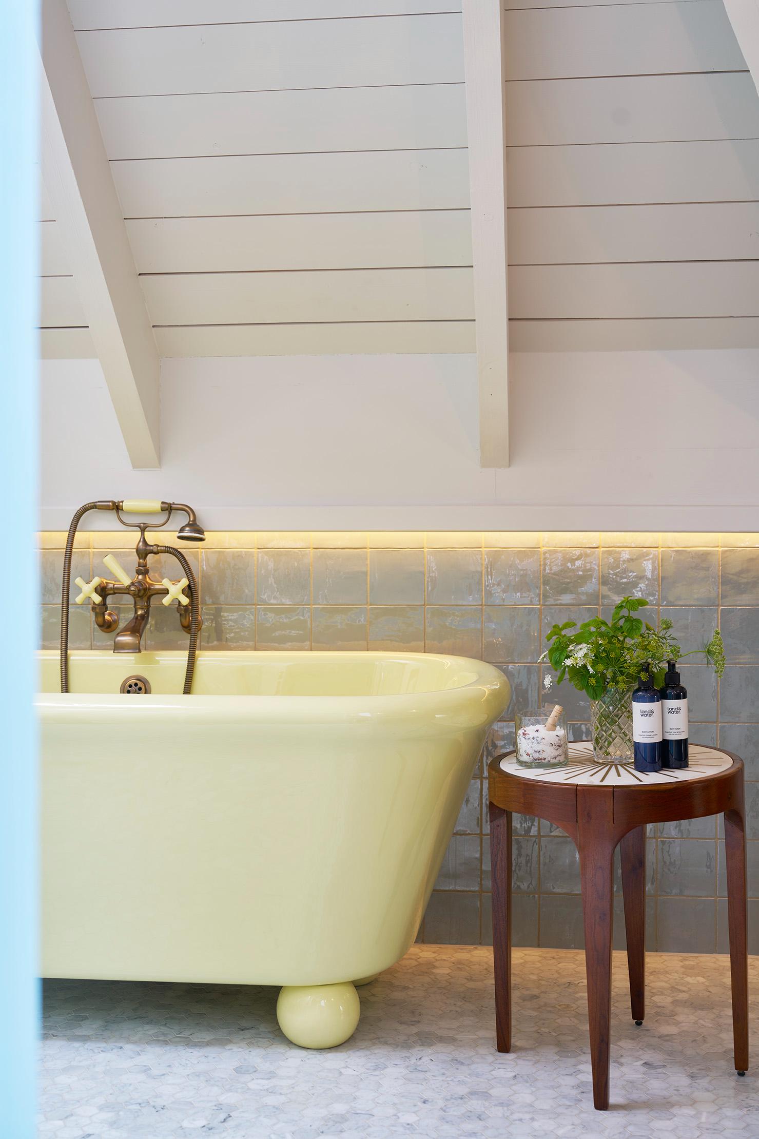 Let the carefully styled and crafted interiors whisk you to the glamour and charm of the 1940s via soft pastel colours and pretty retro prints. In the bathroom, a statement primrose-yellow tub will act as a siren’s call for an extended soak before dinner.